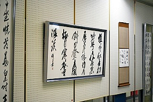 オープニング書道部パフォーマンス作品が管理棟正面に掲げられました。